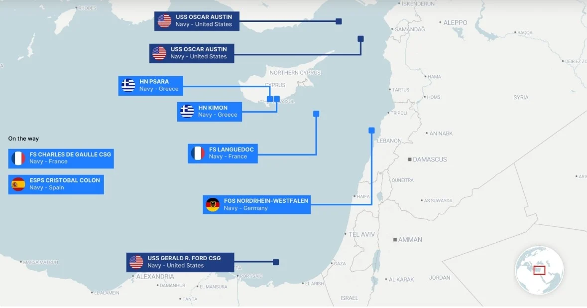 Χάρτης με τη ευρωπαϊκή ναυτική «ασπίδα» γύρω από την Κύπρο απέναντι σε ιρανικές απειλές (Βίντεο)