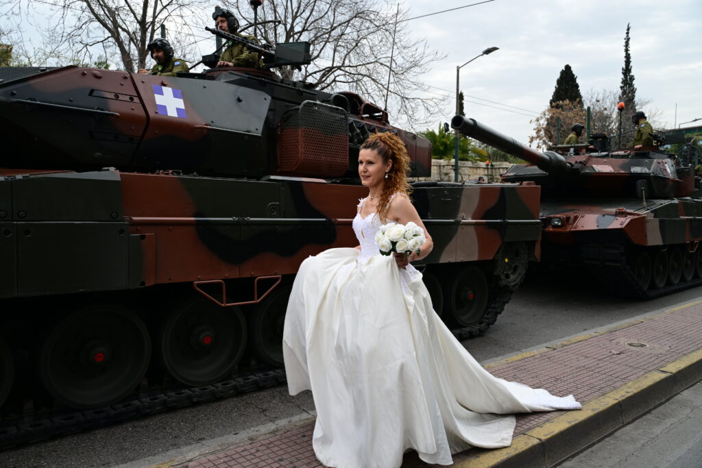 Ζευγάρι γιόρτασε την επέτειο του ενός χρόνου γάμου στο περιθώριο της στρατιωτικής παρέλασης, για την εθνική επέτειο της 25ης Μαρτίου 1821, στην Αθήνα.