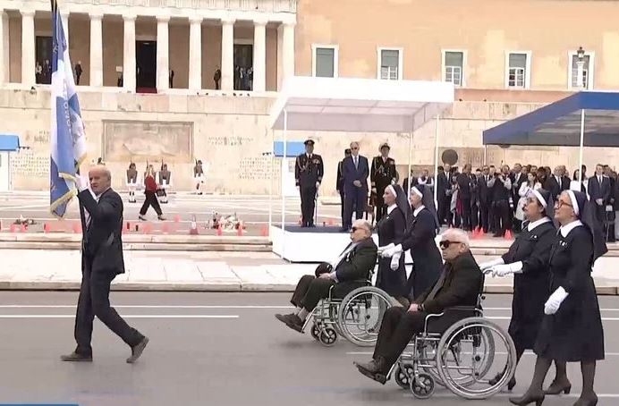 Ρίγη συγκίνησης κατά τη στιγμή της διέλευσης των Αναπήρων Πολέμου κατά την μεγαλειώδη στρατιωτική παρέλαση της Αθήνας για την 25η Μαρτίου και τον εορτασμό της εθνικής επετείου 25ης Μαρτίου 1821.
