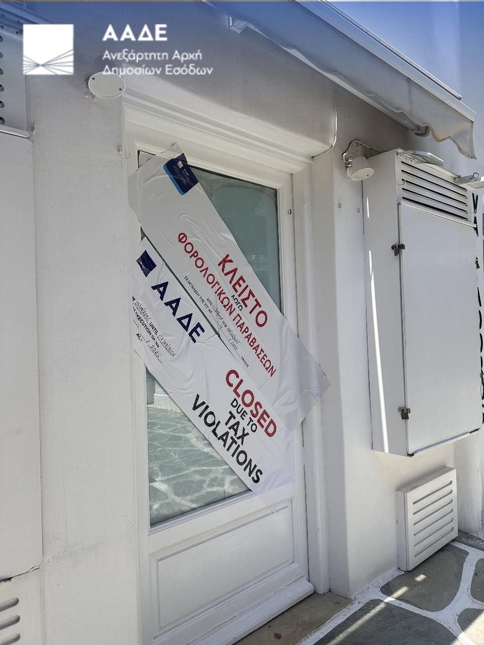 *Στη Μύκονο, ιταλικό εστιατόριο δεν είχε εκδώσει το 2021 μία απόδειξη 28.000 ευρώ πλέον ΦΠΑ 4.000 ευρώ. Το πρόστιμο είναι 2.000 ευρώ, συνοδευόμενο από 48ωρο λουκέτο.