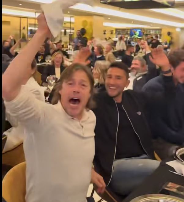 Ο Αλμέιδα σε τρελά κέφια τραγουδούσε το Forza AEKΑΡΑ, το ίδιο επίσης ο Ριμπάλτα αλλά και οι παίκτες.