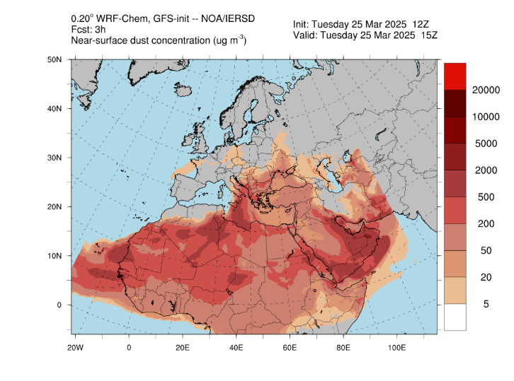 Δείτε τους χάρτες του Αστεροσκοπείου για την αφρικανική σκόνη:
