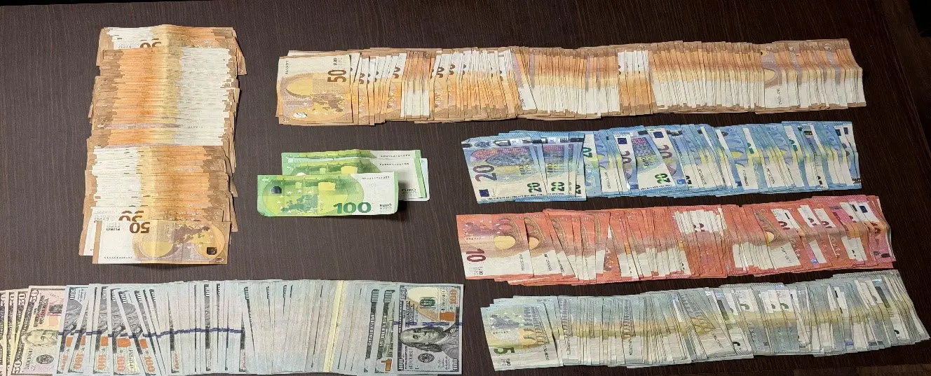Σε έρευνες που πραγματοποιήθηκαν σε οικίες, συνολικά βρέθηκαν και κατασχέθηκαν: 25.695 ευρώ, 10.500 δολάρια, αεροβόλο πιστόλι, φυσίγγιο και βολίδες αεροβόλων, μαχαίρι, κροτίδα, καπνογόνο, όχημα, κινητό τηλέφωνο και 10 σπρέι.