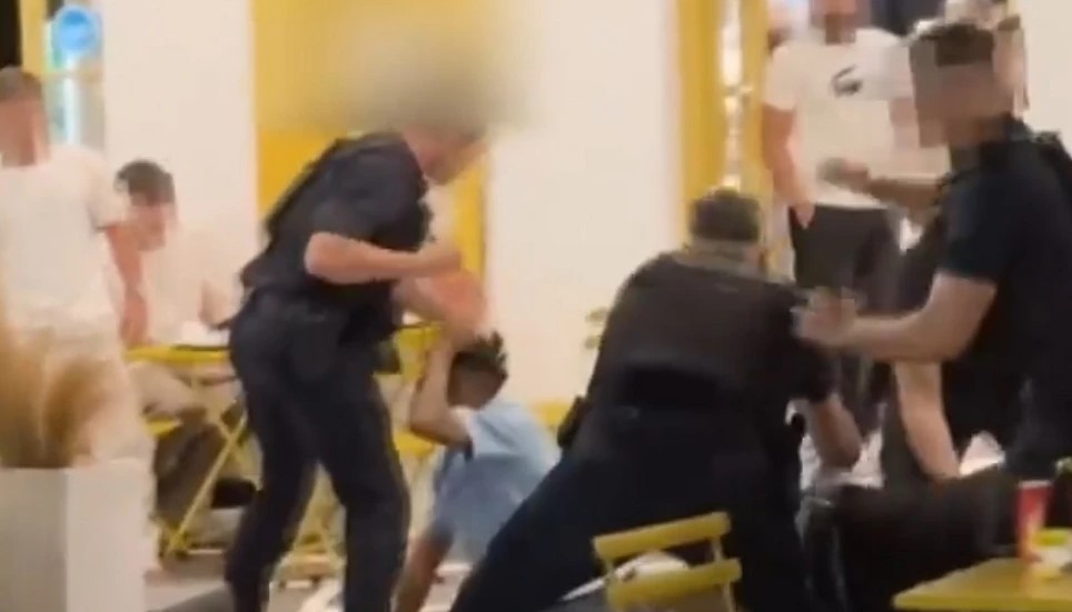 Η Αστυνομία έσπευσε άμεσα στο σημείο για να χωρίσει τους εμπλεκόμενους, ωστόσο οι τουρίστες αρνήθηκαν να συμμορφωθούν και αντέδρασαν επιθετικά, φτάνοντας στο σημείο να επιτεθούν στους ίδιους τους αστυνομικούς.