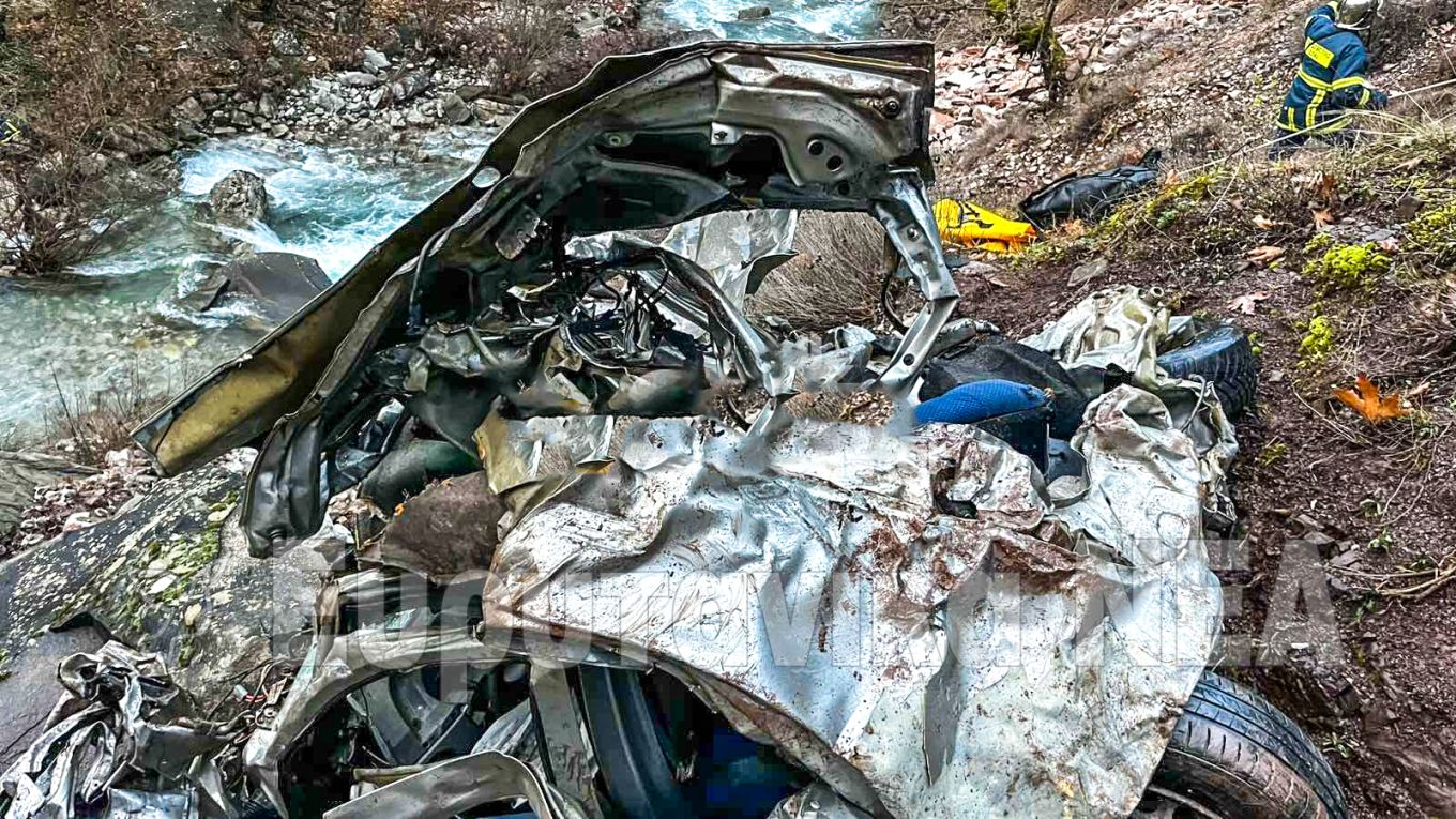 Κάτω από συνθήκες που παραμένουν μέχρι στιγμής αδιευκρίνιστες, το ασημί όχημα βγήκε από τον δρόμο και κατέληξε σε χαράδρα βάθους περίπου 300 μέτρων.