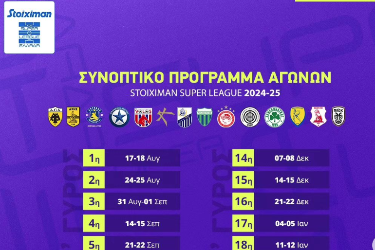Το ετήσιο συνοπτικό πρόγραμμα της κανονικής διάρκεια των αγώνων του πρωταθλήματος της χρονιάς 2024-2025 ανακοίνωσε η Super League.