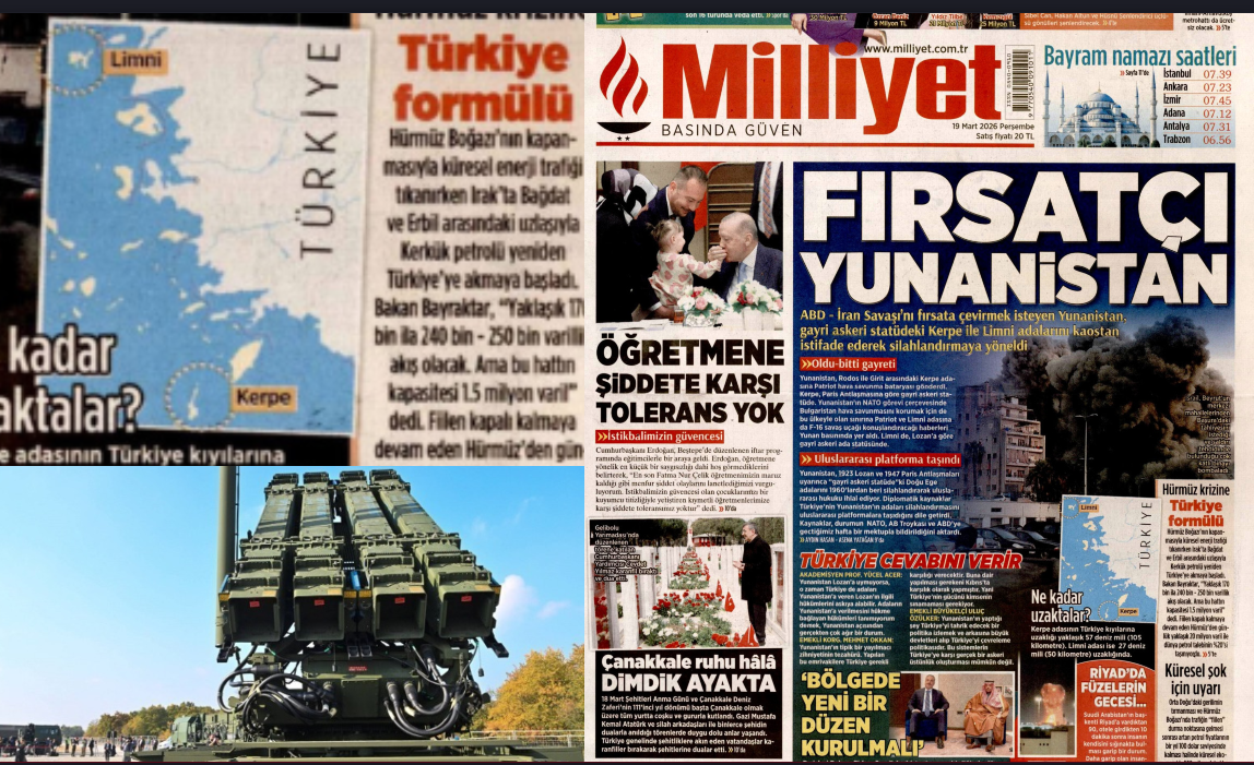 Η Milliyet προχωρά ένα βήμα παραπέρα, επαναφέροντας τον πάγιο ισχυρισμό της Τουρκίας ότι η Ελλάδα παραβιάζει διεθνείς συνθήκες. Επικαλείται τη Συνθήκη της Λωζάνης και τη Συνθήκη των Παρισίων, υποστηρίζοντας ότι νησιά όπως η Κάρπαθος και η Λήμνος τελούν υπό καθεστώς αποστρατιωτικοποίησης.
