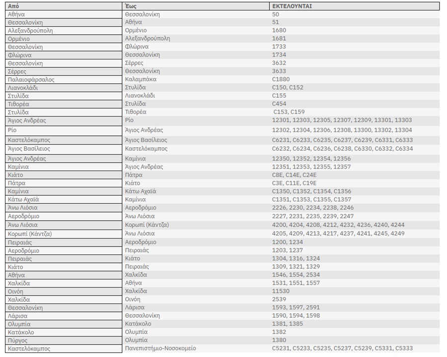 Ακολουθούν αναλυτικά τα δρομολόγια που θα πραγματοποιηθούν την Τρίτη 18/11/2025: