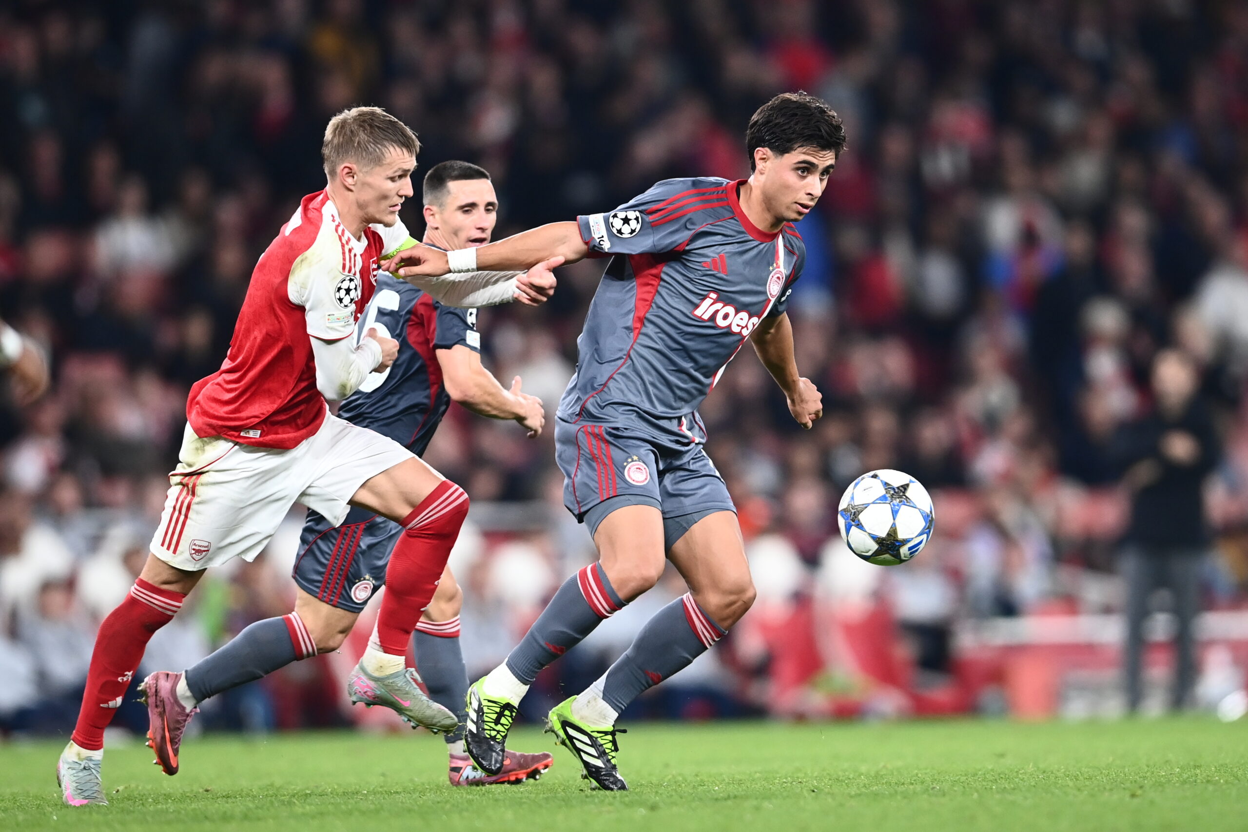 Οι «ερυθρόλευκοι» κοίταξαν στα μάτια την Άρσεναλ στο Λονδίνο, έχασαν ευκαιρίες για την ισοφάριση αλλά τελικά γνώρισαν την ήττα με 2-0 στη 2η αγωνιστική της League Phase του Champions League.