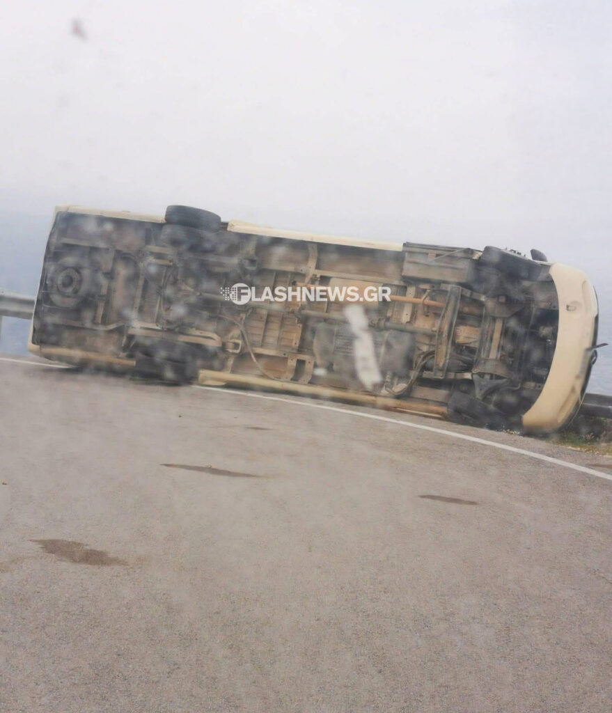 Χανιά: Ανετράπη λεωφορείο από τους ισχυρούς ανέμους