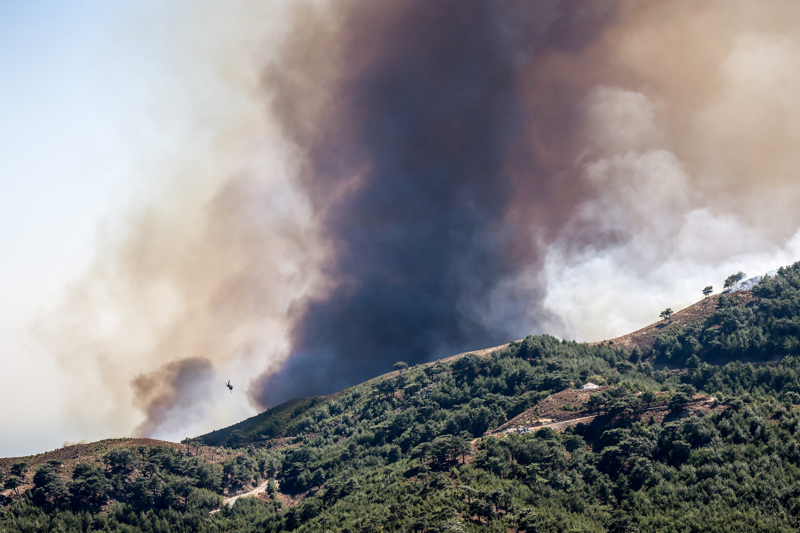 Συνεχίζεται η μάχη με τις φλόγες στη Χίο, με την πυρκαγιά που κατακαίει το βόρειο τμήμα του νησιού να κινείται πλέον νοτιότερα. Εκτός από το μέτωπο στην Πισπιλούντα, που παραμένει ανεξέλεγκτο, η φωτιά έχει περικυκλώσει τα Λημνιά, ενώ ήδη έχουν εκκενωθεί οι οικισμοί Μάναγρος, Μαγεμένα και Χωρή.