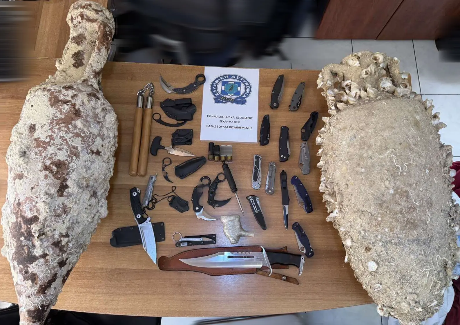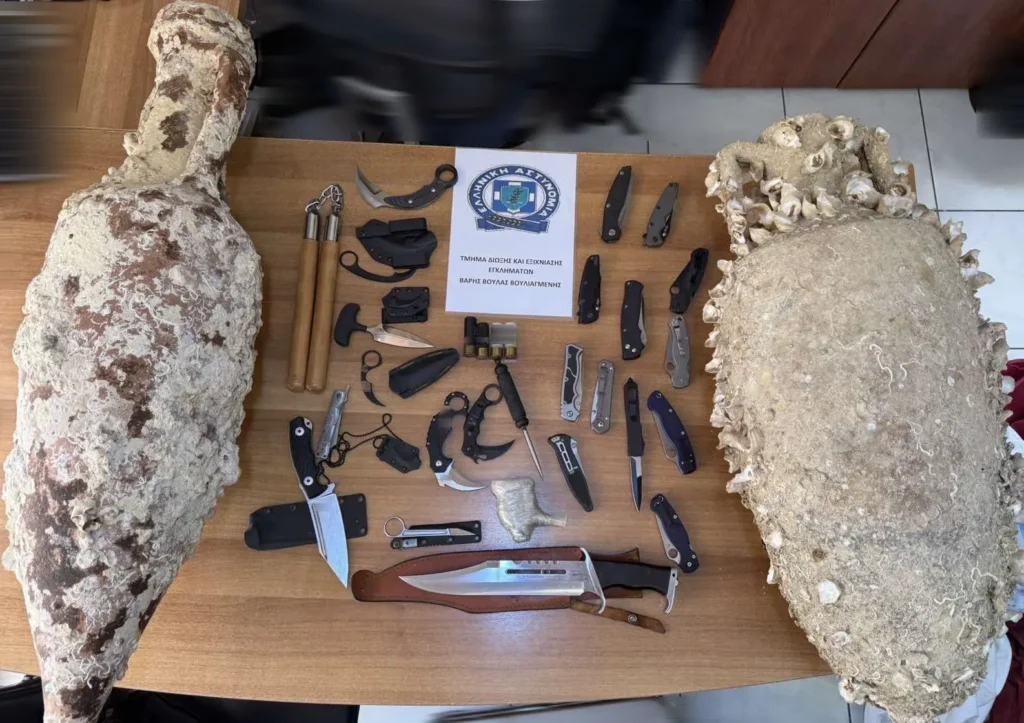 Δεκάδες μαχαίρια, αμφορείς και όπλα εντοπίστηκαν στο σπίτι 47χρονου στη Βούλα