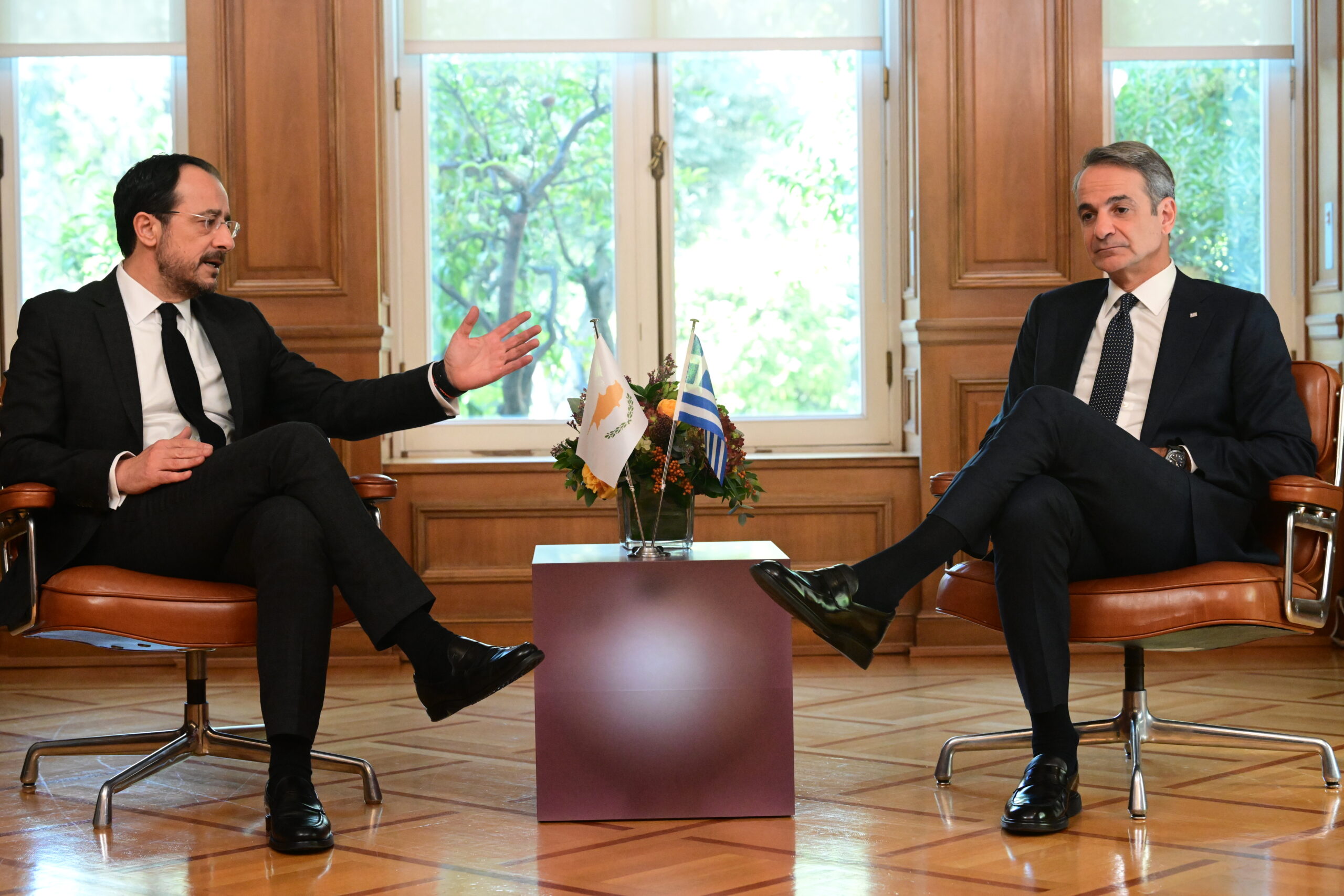 Κατά την έναρξη της συνάντησής τους, ο Κυριάκος Μητσοτάκης και ο Νίκος Χριστοδουλίδης είχαν τον ακόλουθο διάλογο: