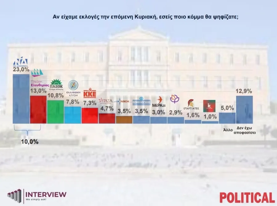 Δημοσκόπηση Interview: Ανοδική πορεία με 27% για τη ΝΔ, σταθεροποιείται στη δεύτερη θέση η Ζωή – Αυτοδύναμη κυβέρνηση θέλουν οι πολίτες