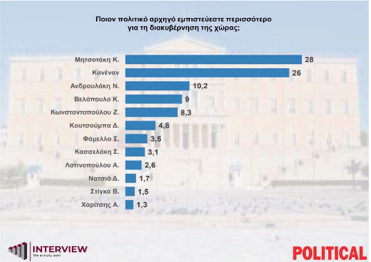 Τα ποσοστά εμπιστοσύνης προς τους υπόλοιπους πολιτικούς αρχηγούς διαμορφώνονται ως εξής: