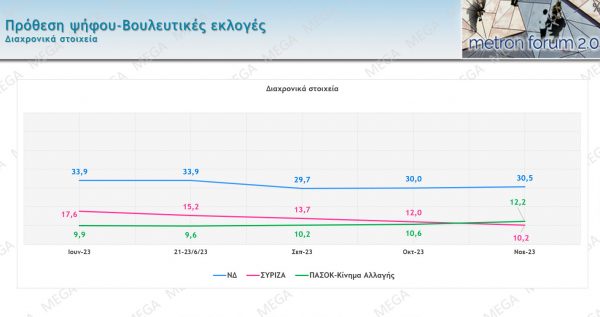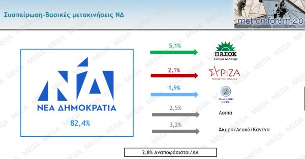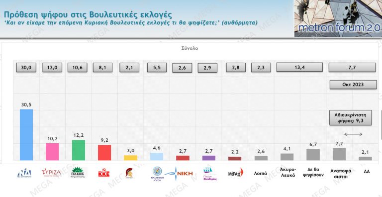 Δημοσκόπηση Metron Analysis: Άνετη πρωτιά για ΝΔ – Μεγαλώνει η διαφορά ανάμεσα σε ΠΑΣΟΚ – ΣΥΡΙΖΑ