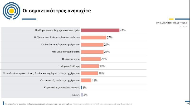 Ακρίβεια, πληθωρισμός, εντάσεις και πιθανός πόλεμος ανησυχούν τους Ευρωπαίους