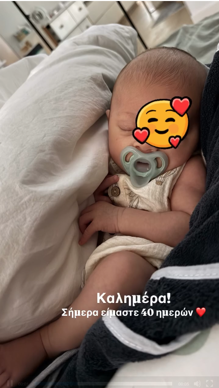 Η Δώρα Παντέλη, το πρωί της Πέμπτης 4 Σεπτεμβρίου δημοσίευσε στον προσωπικό της λογαριασμό στο Instagram μια φωτογραφία του μικρού της και της συνόδευσε γράφοντας: «Καλημέρα σήμερα είμαστε 40 ημερών».