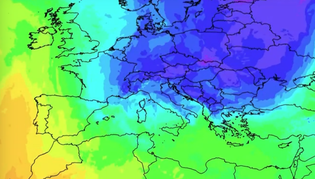 «Μια ψυχρή αέρια μάζα θα προσεγγίσει την χώρα μας από την Κυριακή. Η πολική αυτή αέρια μάζα (μπλε χρώμα) θα κατέβει από την Κεντρική και Βόρεια Ευρώπη, με αποτέλεσμα να έχουμε ένα χειμωνιάτικο σκηνικό μοτίβο, φυσιολογικός για την εποχή καιρός. Δεν αναμένουμε κάτι το ακραίο» τόνισε ο κ. Μαρουσάκης.