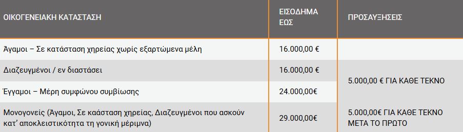 Έτος αναφοράς για τα ως άνω εισοδηματικά κριτήρια αποτελεί το προηγούμενο φορολογικό έτος. Στην περίπτωση που δεν έχει υποβληθεί ακόμη η σχετική φορολογική δήλωση σύμφωνα με τις προβλεπόμενες από την ΑΑΔΕ προθεσμίες, θα λαμβάνεται υπ’ όψιν το εισόδημα του αμέσως προηγούμενου φορολογικού έτους βάσει της σχετικής φορολογικής δήλωσης».