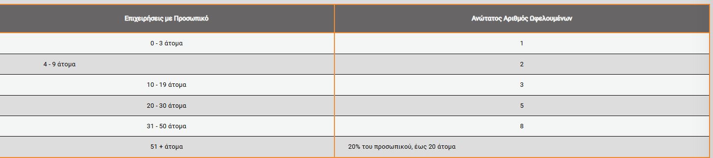 Οι επιχειρήσεις που ενδιαφέρονται να συμμετάσχουν στο πρόγραμμα εντάσσονται ανάλογα με το προσωπικό που απασχολούν, ως εξής: