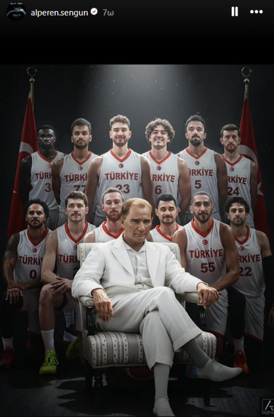 Ωστόσο, αντιδράσεις προκάλεσαν αναρτήσεις του μεγάλου αστεριού της Εθνικής Τουρκίας, Αλπερέν Σενγκούν, με περιεχόμενο που ερμηνεύτηκε ως εθνικιστικό. Αρχικά, ο παίκτης των Χιούστον Ρόκετς δημοσίευσε μια AI φωτογραφία με τον Κεμάλ να κάθεται σε καρέκλα και πίσω του όλους τους παίκτες της τουρκικής ομάδας. Στη συνέχεια, ανάρτησε εικόνες από τον αγώνα με την Ελλάδα, γράφοντας: «Δεν θα ήταν ωραίος καιρός για θάλασσα». Πολλοί θεώρησαν πως πρόκειται για αναφορά στη Μικρασιατική καταστροφή, μιας και παραπέμπει στο γνωστό ανθελληνικό σχόλιο ότι το 1922 «έμαθαν στους Έλληνες κολύμπι».