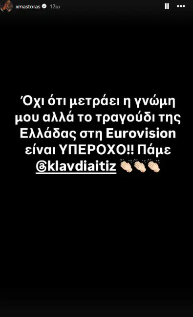 Μέσα από τα social media αρκετοί καλλιτέχνες – celebrities ευχήθηκαν στην Κλαυδία, λίγο πριν ανέβει στη σκηνή της Eurovision 2025, στέλνοντας μήνυμα για «Καλή Επιτυχία».