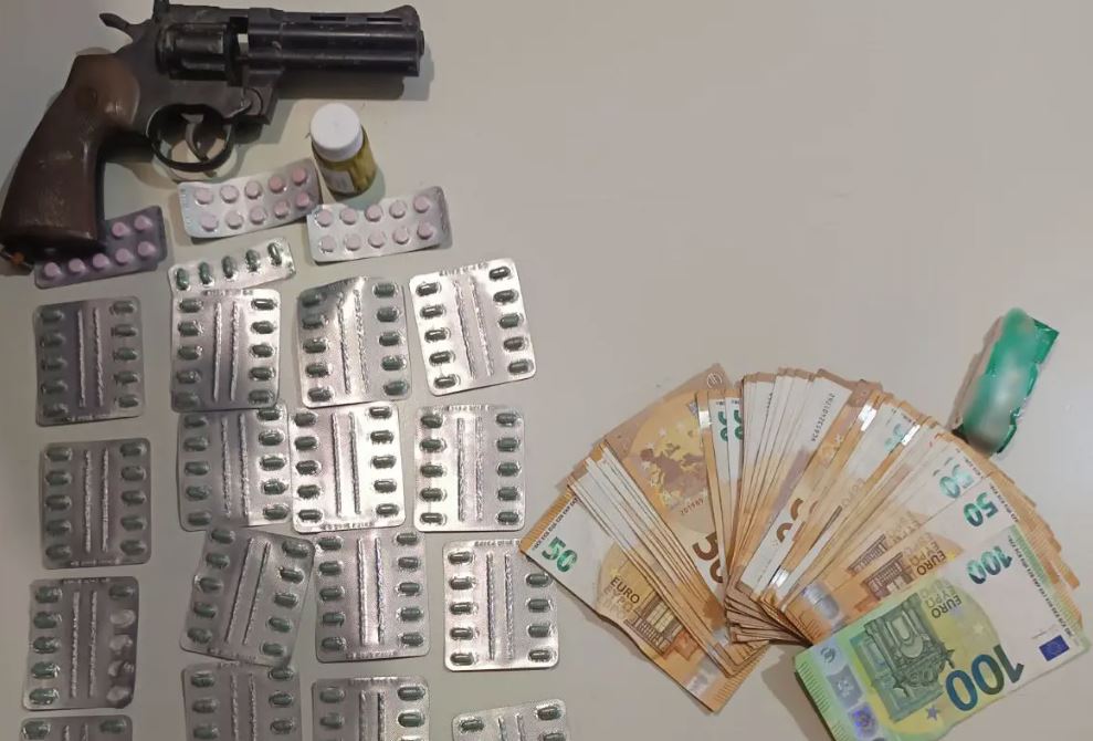 Κατασχέθηκαν 250 ναρκωτικά δισκία, αεροβόλο πιστόλι και το χρηματικό ποσό των –3.000- ευρώ.