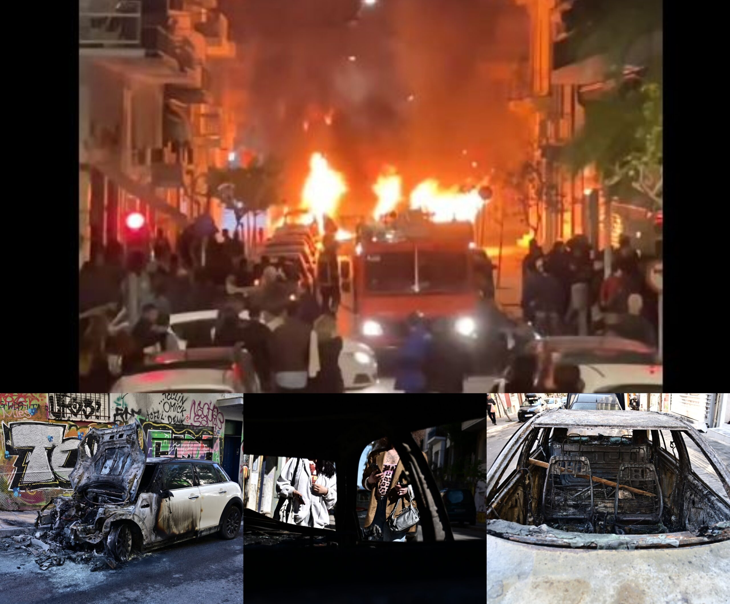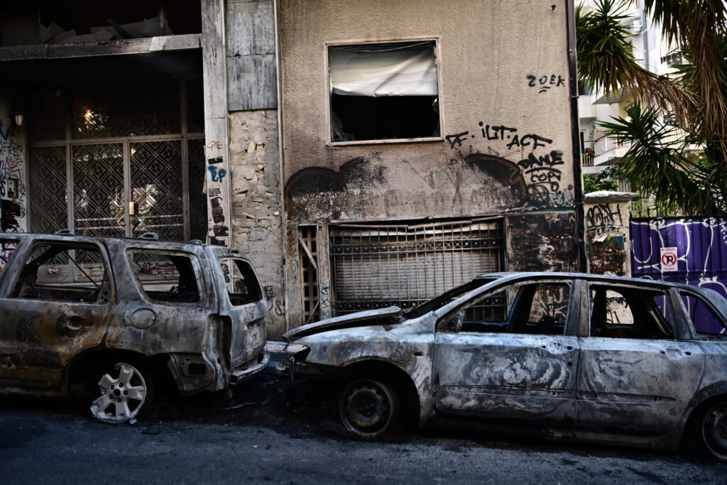 Εξάρχεια: Τοπίο καταστροφής με καμένα αυτοκίνητα η επόμενη μέρα – Τραυματίστηκε αστυνομικός, 72 προσαγωγές (Φωτό & Βίντεο)