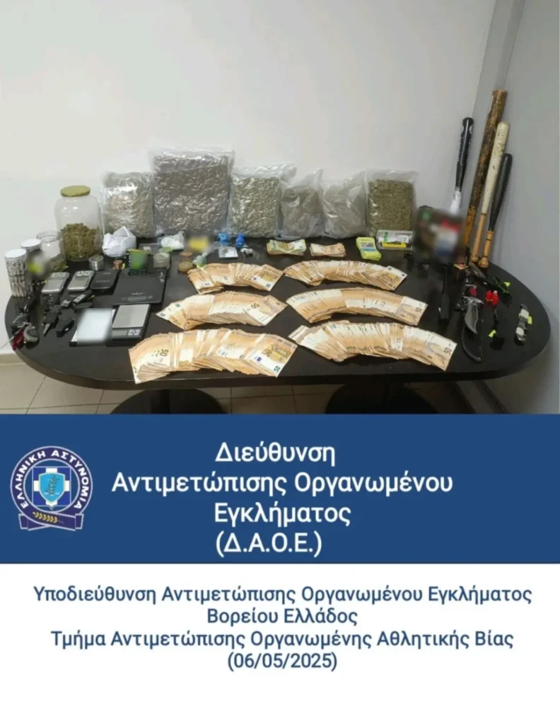 Για τον τερματισμό της δράσης τους πραγματοποιήθηκε πρωινές ώρες χθες Τρίτη 6 Μαΐου 2025, σε περιοχές της Βόρειας Ελλάδος και του Νοτίου Αιγαίου, ευρείας κλίμακας αστυνομική επιχείρηση με τη συνδρομή επιχειρησιακών ομάδων της Δ.Α.Ο.Ε., αστυνομικών των Διευθύνσεων Αστυνομίας Πέλλας και Κυκλάδων, καθώς και σκύλου της Υποδιεύθυνσης Ειδικών Αστυνομικών Δυνάμεων Βορείου Ελλάδος.