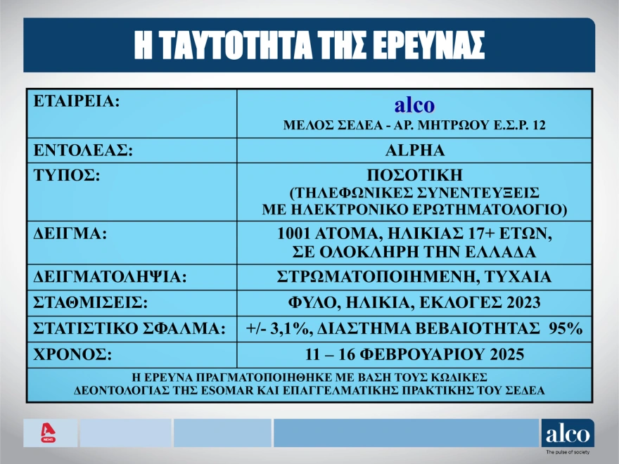 Δημοσκόπηση ALCO για λογαριασμό του ALPHA
