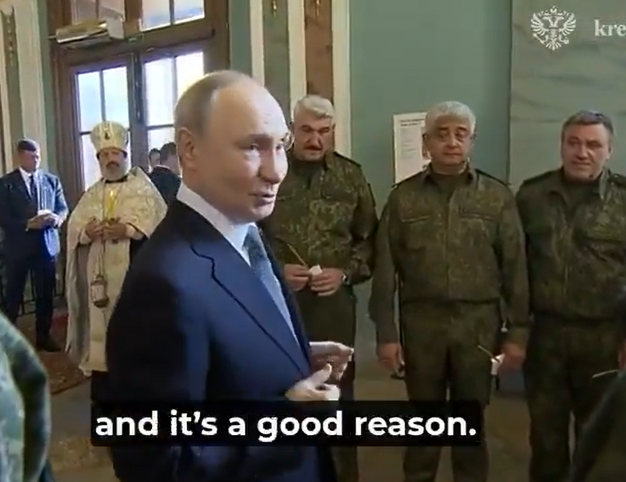 Μαζί του στον ναό βρέθηκαν ο υπουργός Άμυνας Μπελούσοφ και οι ανώτατοι στρατηγοί των ρωσικών ενόπλων δυνάμεων. Εκεί, ο Πούτιν δήλωσε: «Υπάρχει ανάγκη να σας μιλήσω πρόσωπο με πρόσωπο, και είναι καλός λόγος. Αποφάσισα να αρχίσω τη συνάντησή μας εδώ, επειδή αυτός είναι ο τόπος ανάπαυσης εκείνων που, ουσιαστικά, δημιούργησαν τη Ρωσία».