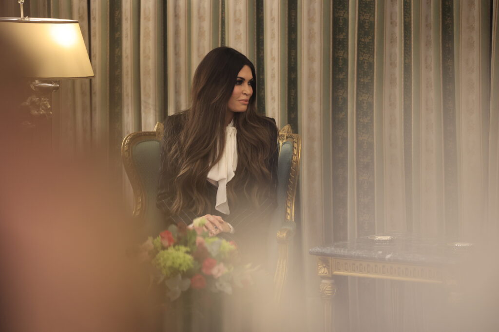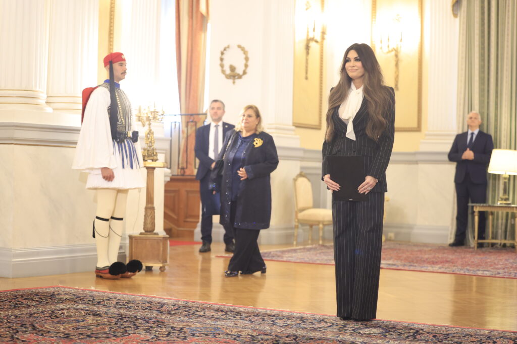 Ο Γιώργος Ζεβελάκης, επικεφαλής της εθιμοτυπίας του Υπουργείου Εξωτερικών, καλωσόρισε την πρέσβη των Ηνωμένων Πολιτειών, Κίμπερλι Γκιλφόιλ, πριν την έναρξη της επίσημης τελετής. Με τον εθνικό ύμνο να ηχεί, η νέα πρέσβης κατευθύνθηκε προς τον Πρόεδρο της Δημοκρατίας. «Κύριε Πρόεδρε, έχω την τιμή να σας παρουσιάσω τα διαπιστευτήριά μου από τον Πρόεδρο των Ηνωμένων Πολιτειών.»