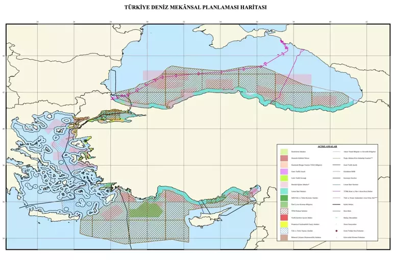 «Καθορίσαμε τα εξωτερικά σύνορα της μελέτης χωροταξικού θαλάσσιου σχεδιασμού της Τουρκίας με βάση τη μέση γραμμή μεταξύ Τουρκίας και Ελλάδας, σύμφωνα με τους θεμελιώδεις κανόνες του διεθνούς ναυτικού δικαίου και τις μεθόδους λύσης που προβλέπονται από τις διεθνείς συνθήκες.