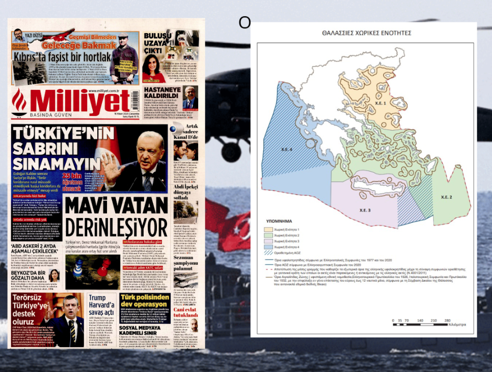 Η Milliyet επαναφέρει τη «Γαλάζια Πατρίδα» και κόβει το Αιγαίο στη μέση – Ηχηρή απάντηση της Αθήνας με θαλάσσιους χωροταξικούς χάρτες