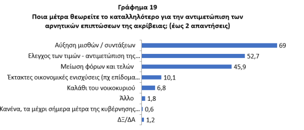 Σε αυτό το δυσμενές περιβάλλον, η πλειονότητα των πολιτών θεωρεί ότι τα πιο αποτελεσματικά μέτρα αντιμετώπισης της οικονομικής δυσχέρειας είναι: