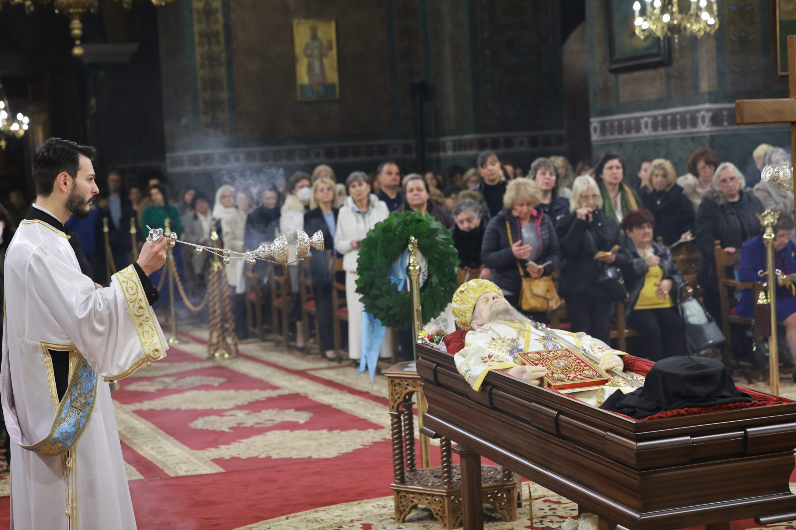 Από το βράδυ της Πέμπτης, το σκήνωμα του μακαριστού Μητροπολίτη είχε τεθεί σε λαϊκό προσκύνημα στον Ιερό Ναό της του Θεού Σοφίας. Η καμπάνα ηχούσε πένθιμα, ενώ πλήθος πιστών και κληρικών συρρέει για να αποχαιρετήσει τον αείμνηστο ποιμενάρχη της πόλης.