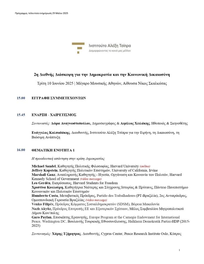Ινστιτούτο Αλέξη Τσίπρα: Κορυφαίες προσωπικότητες στη δεύτερη διεθνή διάσκεψη στις 10 Ιουνίου – Το πρόγραμμα