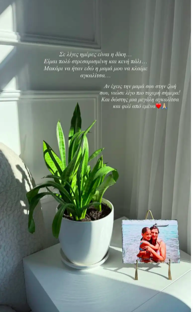 «Σε λίγες ημέρες είναι η δίκη. Είμαι πολύ στρεσαρισμένη και κενή πάλι. Μακάρι να ήταν εδώ η μαμά μου να κλαίμε αγκαλίτσα. Αν έχεις τη μαμά σου στη ζωή σου, νιώσε λίγο πιο τυχερή σήμερα. Και δώστης μια μεγάλη αγκαλιά και φιλί από εμένα» έγραψε στην ανάρτησή της η Ιωάννα Τούνη.