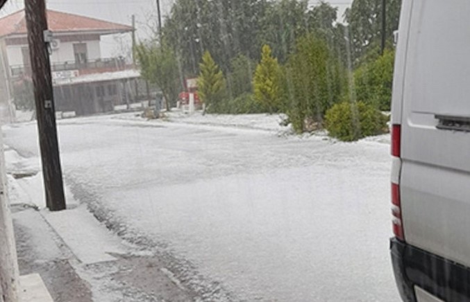 Τα έντονα καιρικά φαινόμενα εκδηλώθηκαν με ιδιαίτερη σφοδρότητα γύρω από τη λίμνη Δοϊράνη και τις Μουριές, όπου το χαλάζι που έπεσε ήταν σε μέγεθος φουντουκιού, σύμφωνα με το eidiseis.gr