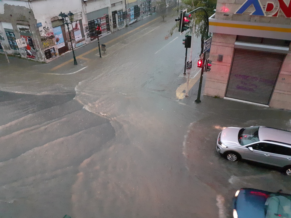 Στο μεταξύ, μετά τις 7.30 το πρωί, το νερό της βροχής, ξεπέρασε το επίπεδο του ύψους των πεζοδρομίων, με συνέπεια να είναι αδιάβατοι τόσο οι δρόμοι, όσο και τα πεζοδρόμια.