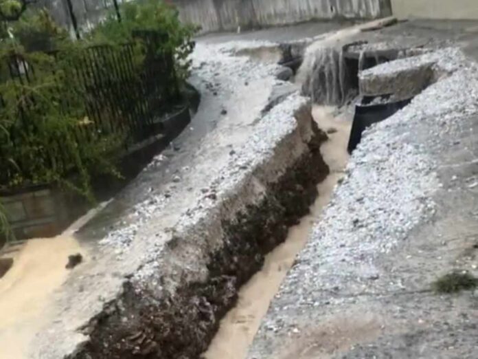 Στα Άνω Λεχώνια, ο δρόμος που βρίσκεται πίσω από το Δημοτικό Σχολείο άνοιξε στα δύο λόγω της μεγάλης ποσότητας νερού που έπληξε την περιοχή.