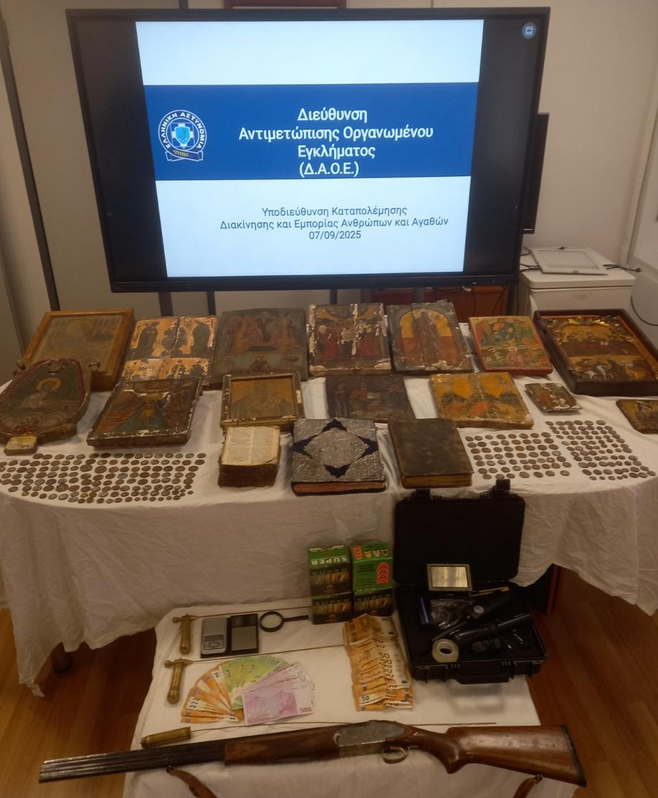 Συνολικά, συνελήφθησαν έξι άτομα, συμπεριλαμβανομένων ενός ενεχυροδανειστή, της συζύγου του, ενός μεσάζοντα και ενός ατόμου που εμπορευόταν αρχαία νομίσματα.