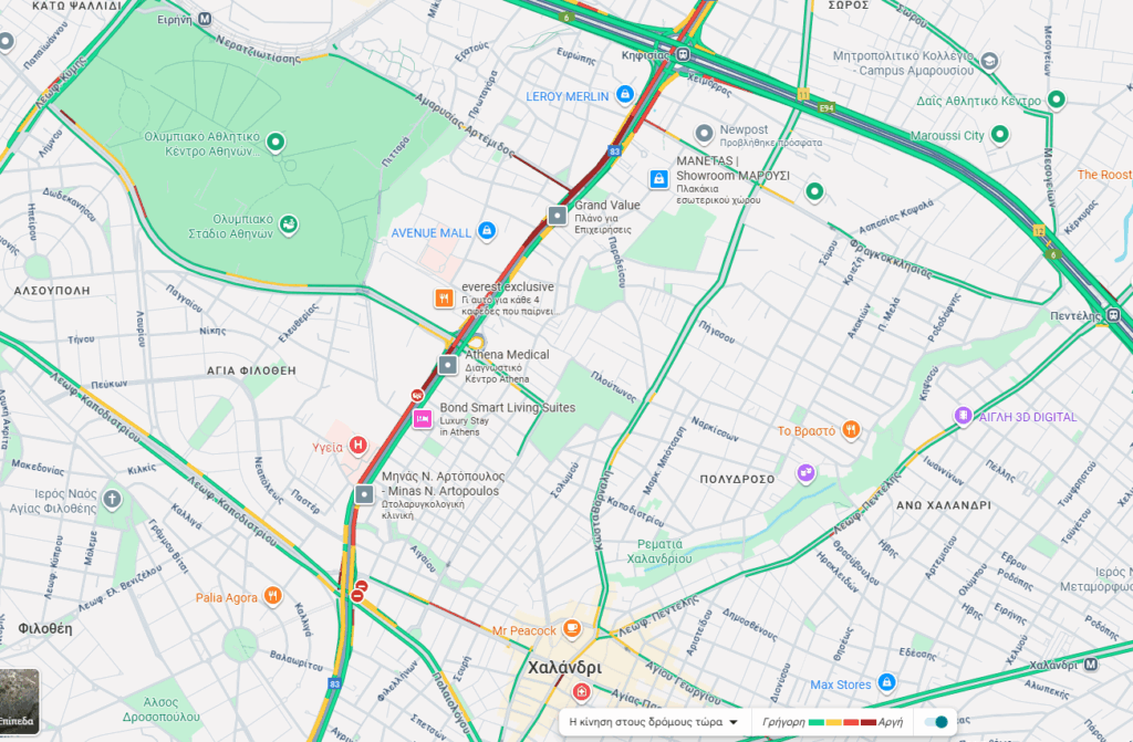 Καραμπόλα 5 οχημάτων στη Λ. Κηφισίας, προκαλεί κυκλοφοριακή συμφόρηση