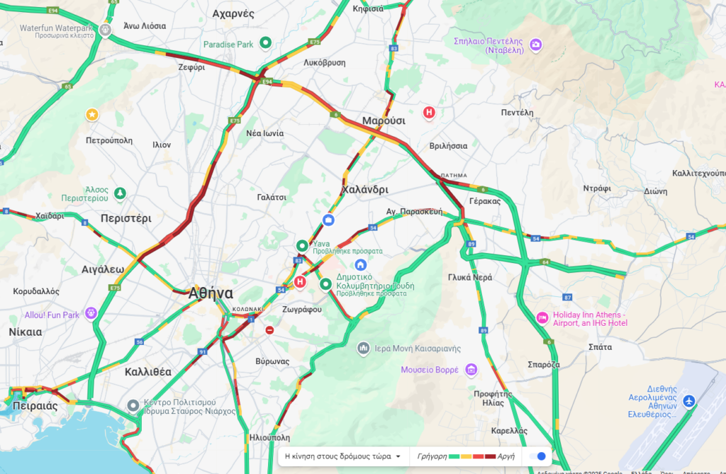 Την ίδια ώρα καθυστερήσεις καταγράφονται και στον Κηφισό, την Κηφισίας, τη Μεσογείων, τη Λεωφόρο Αθηνών στο ύψος του Σκαραμαγκά και το κέντρο της Αθήνας.