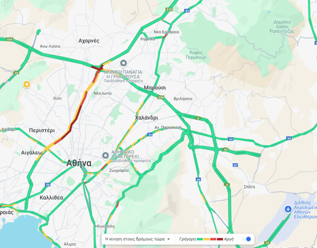 Κίνηση στους δρόμους: Στο «κόκκινο» ο Κηφισός λόγω τροχαίου – Καθυστερήσεις στην Αττική Οδό