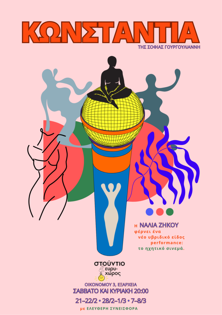 Η Νάλια Ζήκου επιστρέφει στη σκηνή με τη νέα performance «Κωνσταντία», σε κείμενο της Σοφίας Γουργουλιάνη, μεταφέροντας στο θέατρο ένα ηχητικό σύμπαν που «χτίζει» τη δράση αντί να τη συνοδεύει. Η παράσταση παρουσιάζεται στο Στούντιο Ευρυχώρος (Οικονόμου 3, Εξάρχεια), με παραστάσεις Σάββατο και Κυριακή στις 20:00 (21–22/2 • 28/2–1/3 • 7–8/3), με είσοδο ελεύθερης συνεισφοράς.