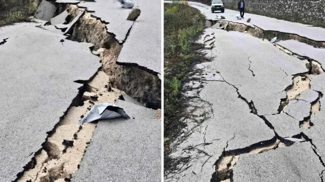 Όπως φαίνεται και στις φωτογραφίες ο δρόμος έχει σπάσει σε μεγάλα κομμάτια και μάλιστα σε εκτεταμένο μήκος.