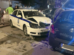 Λάρισα: Σφοδρή καραμπόλα με τρία ΙΧ και περιπολικό – Τρεις τραυματίες