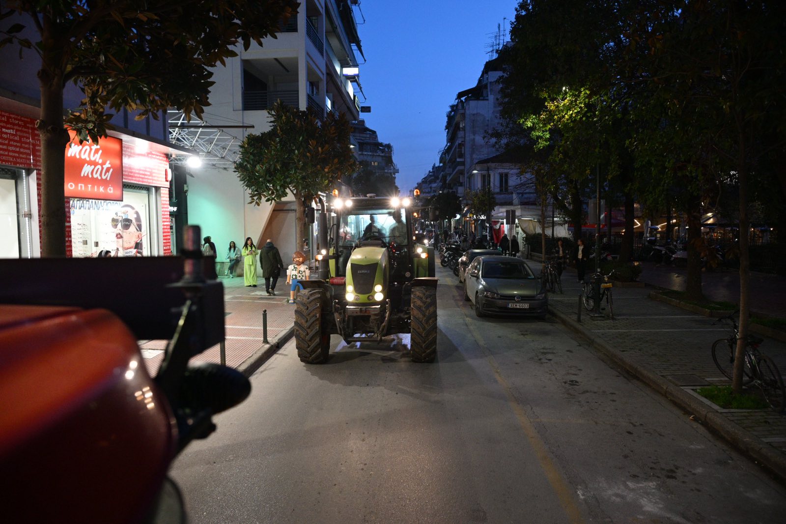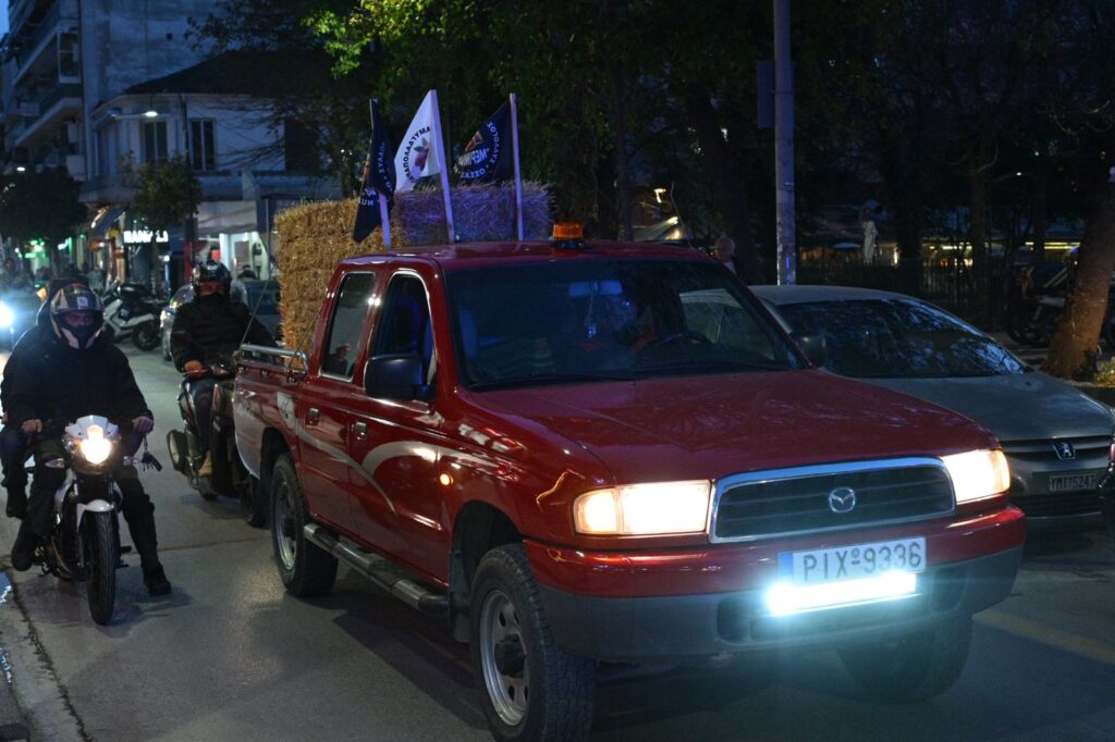 Προηγουμένως κινήθηκαν με αυτοκινητοπομπή στους κεντρικούς δρόμους της Λάρισας ξεσηκώνοντας με κορναρίσματα το κέντρο της πόλης.